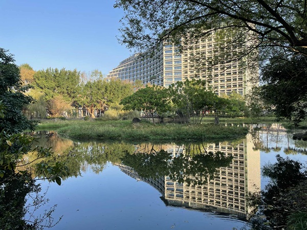 水と緑がにぎやかな街に憩いをもたらす(山﨑直也提供)