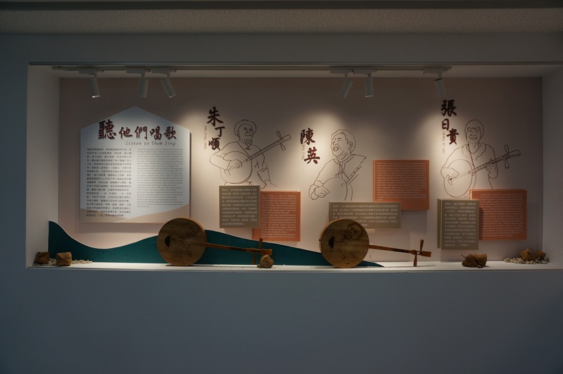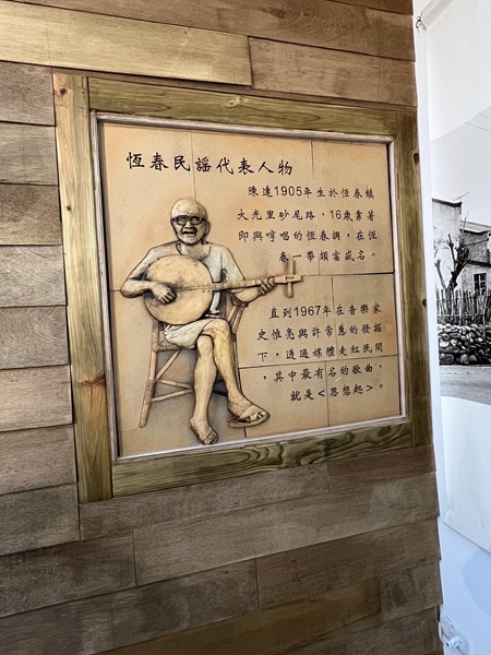 恒春を代表する民謡歌手の紹介と月琴の展示(李佩儒撮影)