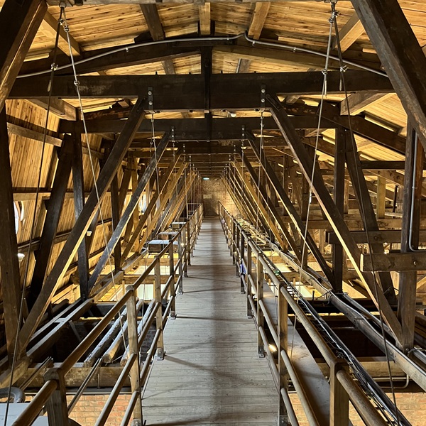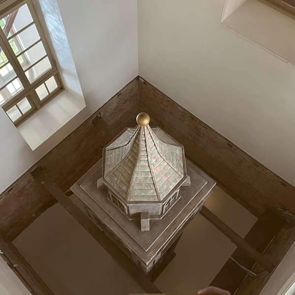 鏡張りの床に投影された塔のミニチュア模型(鳳気至純平撮影)